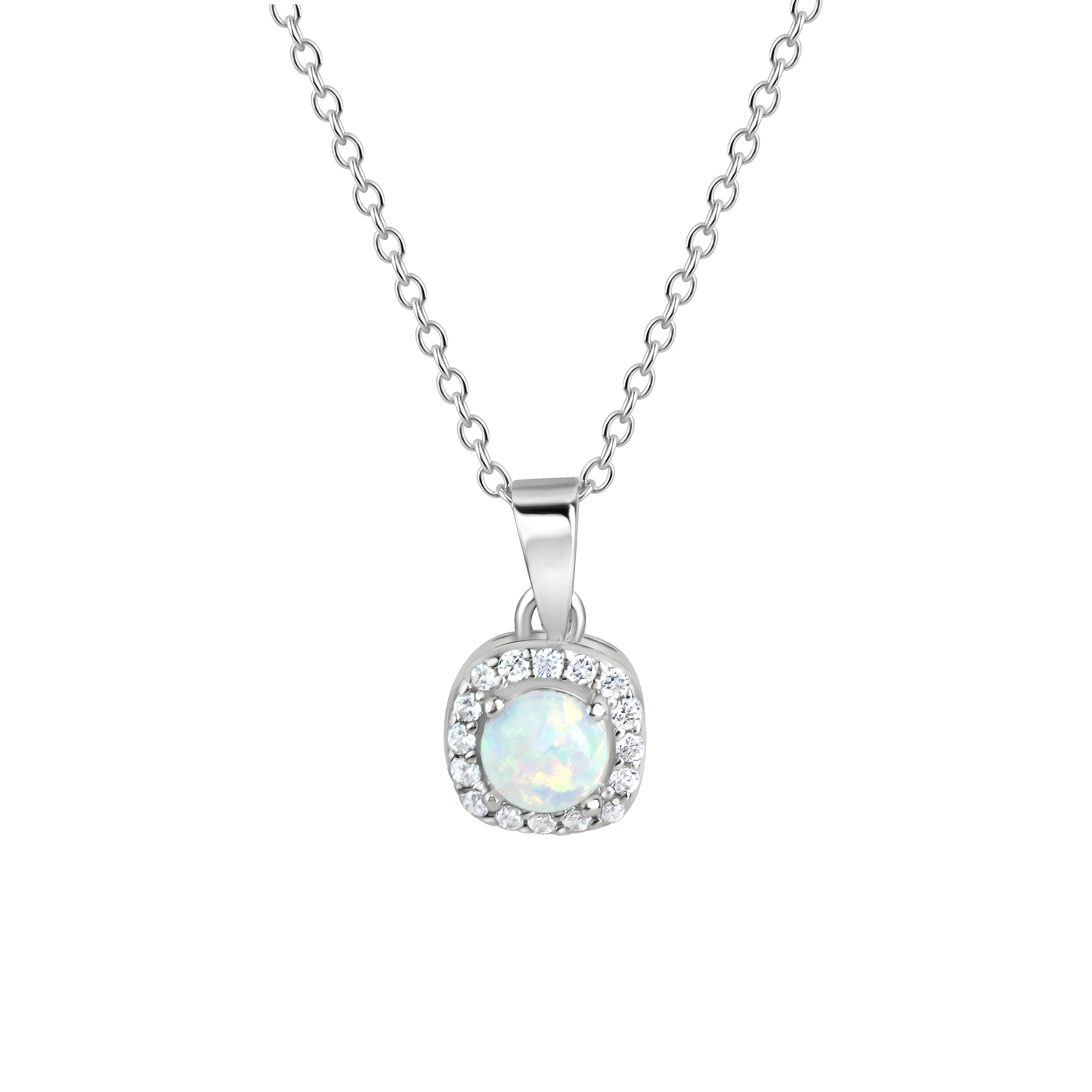 Edler Anhänger mit Kette aus 925/- Sterling Silber rhodiniert. Veredelt mit 1 synth.Opal und 16 weißen Zirkonia. Ankerkette 42+3 cm lang. Hochwertige Verarbeitung. Elegantes Design passt zu jedem Outfit, von lässig bis festlich. .