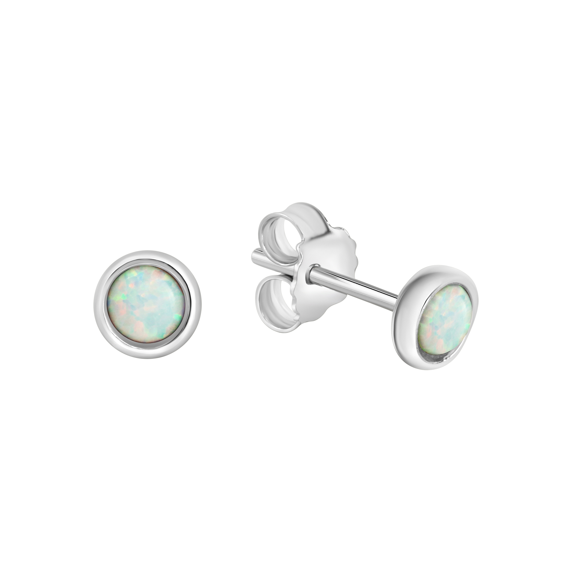 Schlichte Ohrstecker aus 925/- Sterling Silber rhodiniert. Veredelt mit 2 synth. Opalen weiß. Angenehmer Tragekomfort. Hochwertige Verarbeitung. Das perfekte Geschenk zu jedem Anlass. .