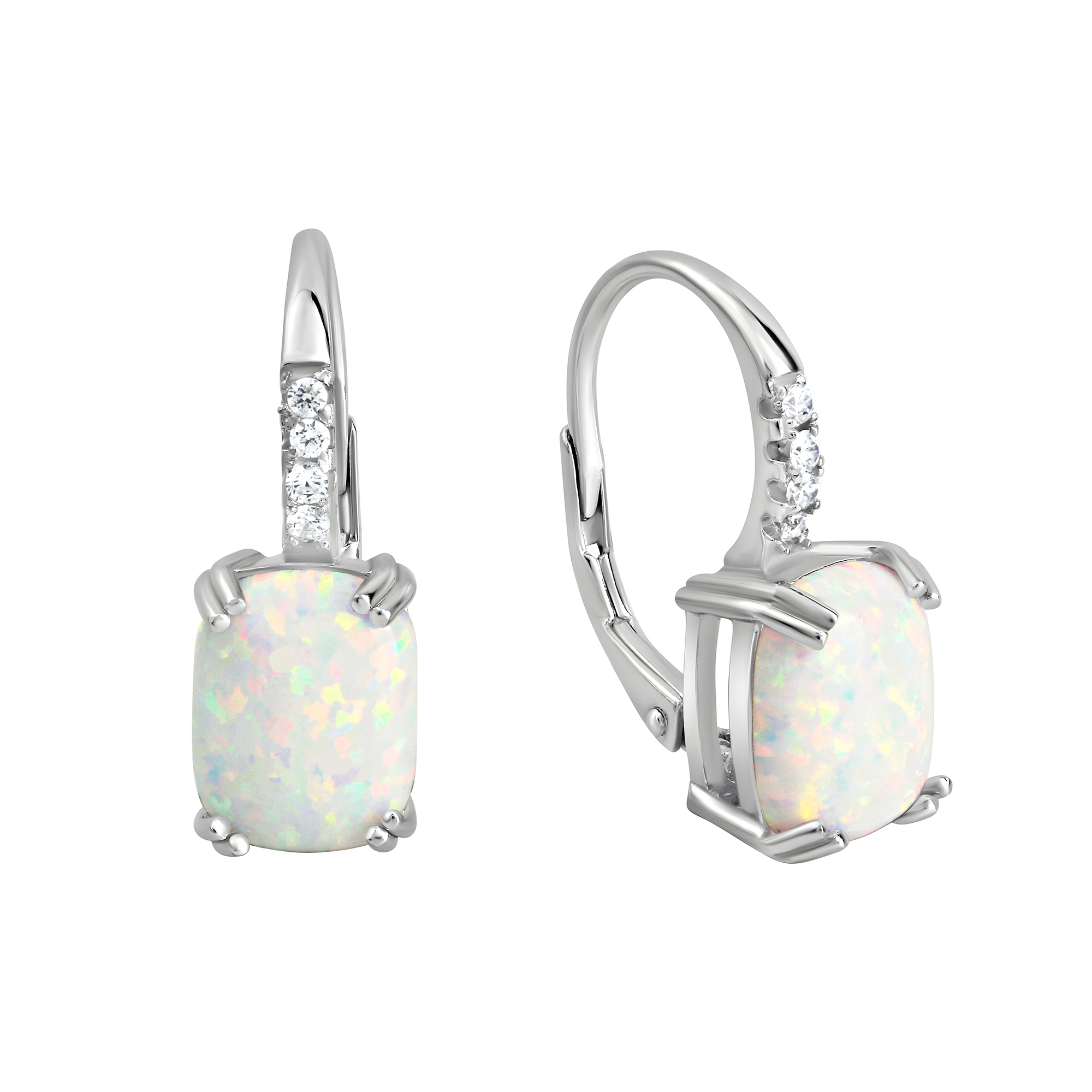 Ohrhänger aus 925/- Sterling Silber rhodiniert. Veredelt mit 2 synth. Opalen weiß. Insgesamt 8 weiße Zirkonia. Hochwertige Verarbeitung. Diese Ohrringe sind das richtige Accessoire für viele Anlässe. .