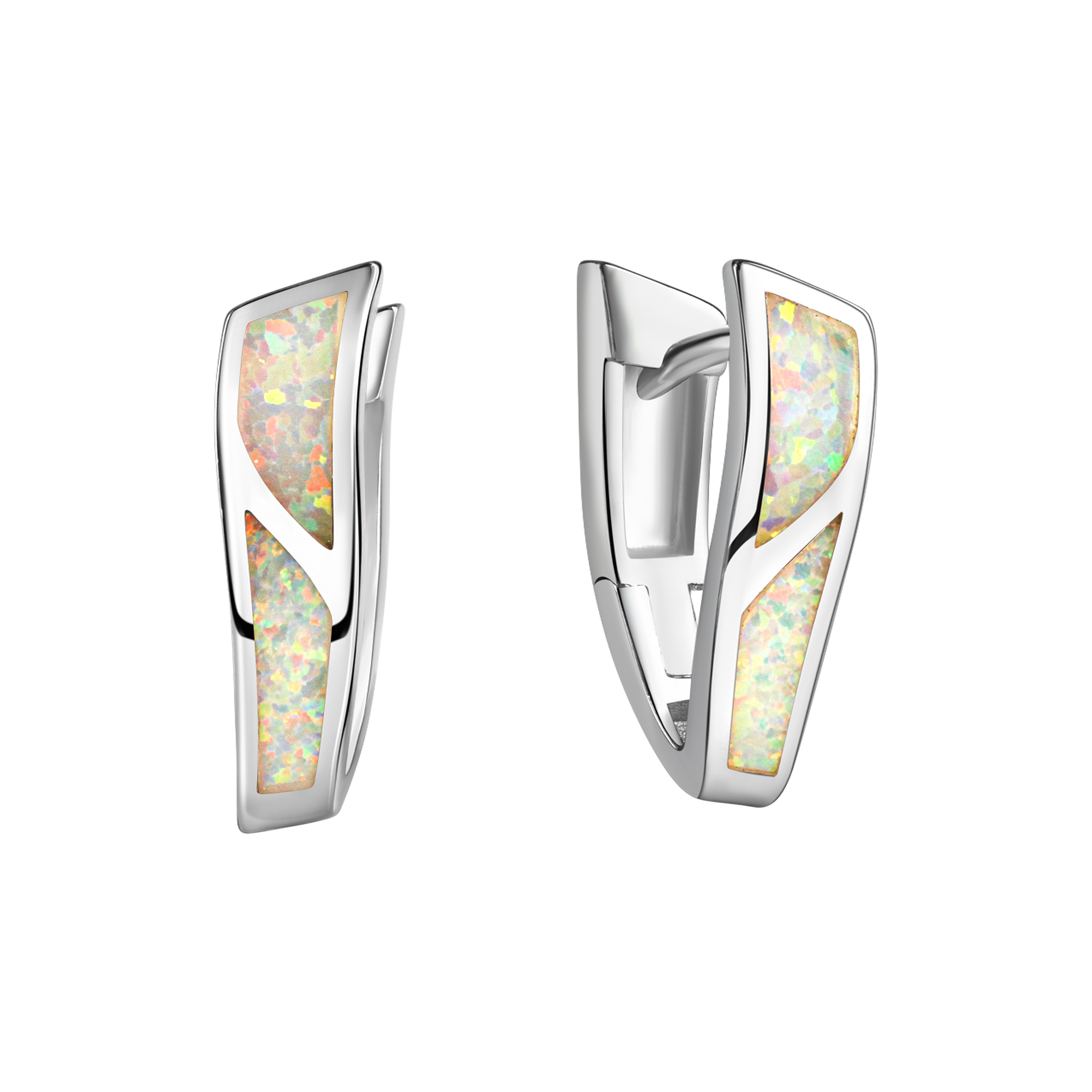 Elegante Creolen aus 925-/ Sterling Silber rhodiniert. Mit synth. Opal weiss. Hochglanzpoliert und anlaufgeschützt. Sehr angenehmer Tragekomfort. Für den Alltag oder besondere Anlässe. .