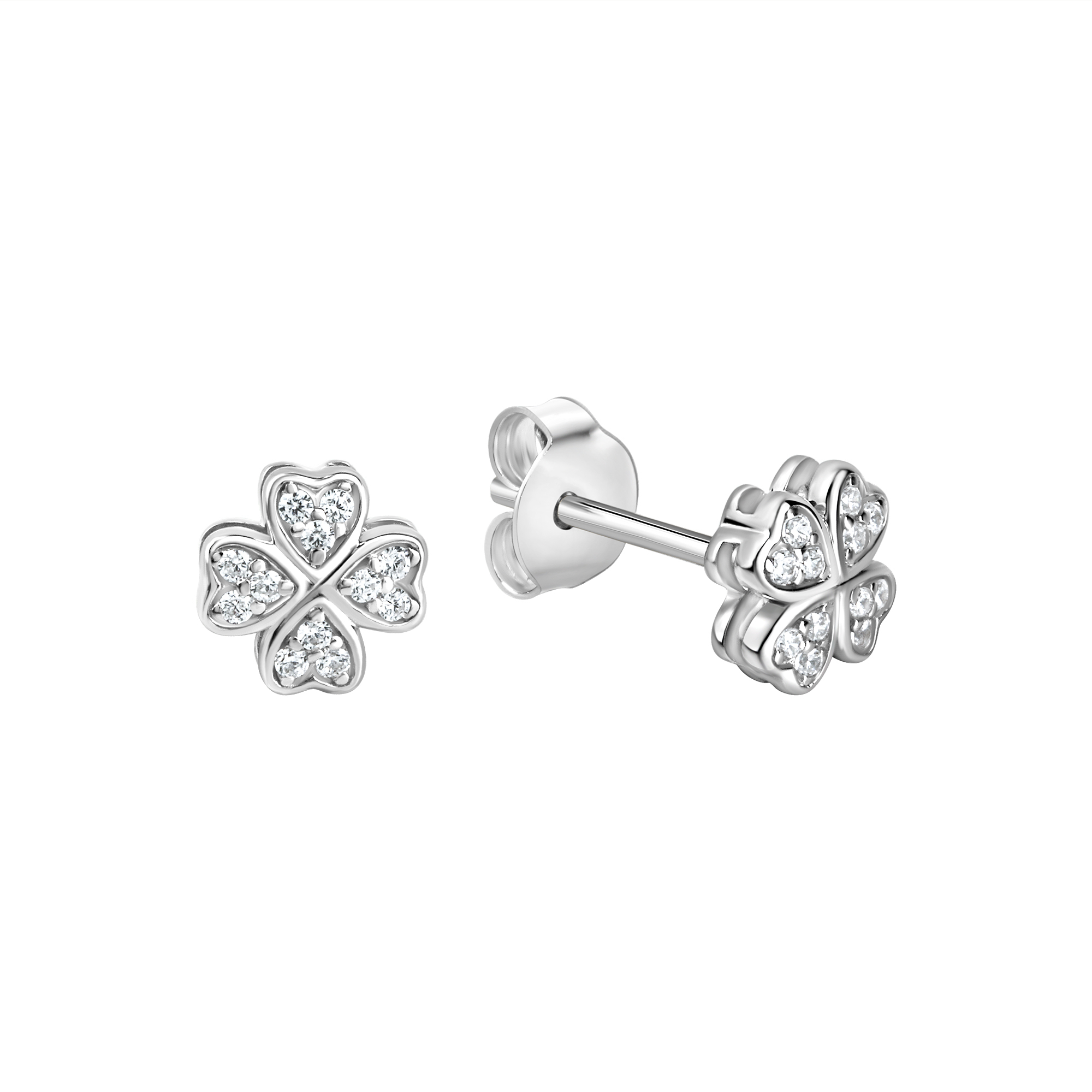 Bezaubernde Ohrstecker aus 925/- Sterling Silber rhodiniert. Motiv Kleeblatt. Veredelt mit 24 weißen Zirkonia. Hochwertige Verarbeitung. Das ideale Geschenk für besondere Anlässe. .