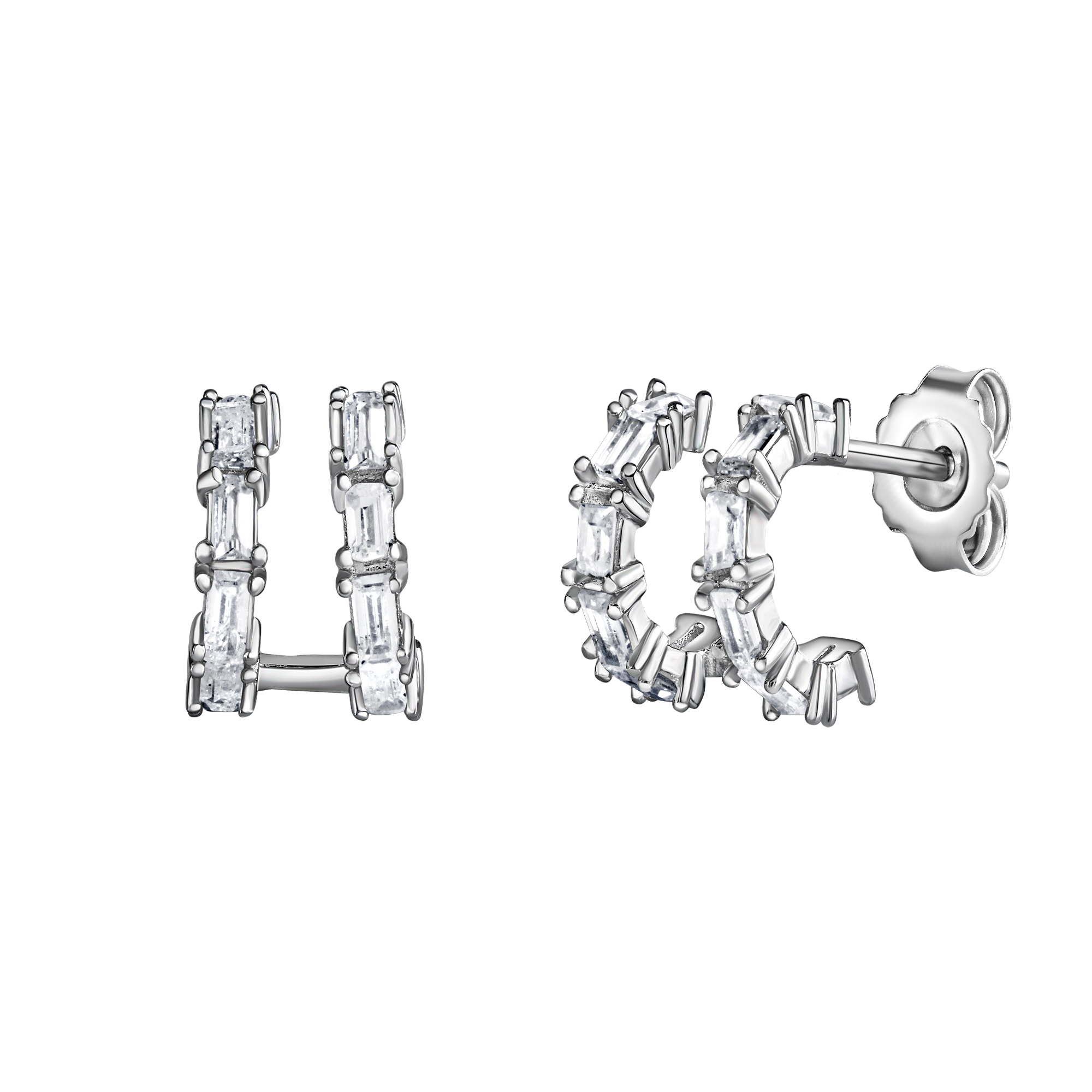 Aussergewöhnliche Ohrstecker aus 925 Silber rhodiniert. Halbrundes Design. Mit funkelnden Zirkonia. Hochwertig gefertigt aus edlen Materialien. Für den Alltag oder besondere Anlässe. .