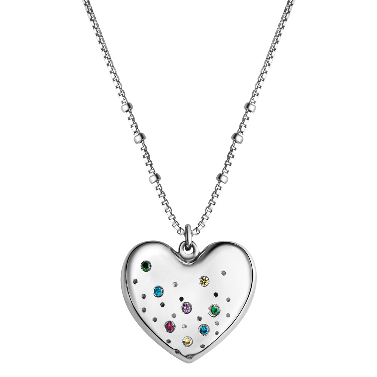 Schönes Collier aus 925/- Sterling Silber rhodiniert. Hochglanzpoliertes Herz. Veredelt mit bunten Zirkonia. Hochwertige Verarbeitung. Das perfekte Geschenk zu jedem Anlass. .