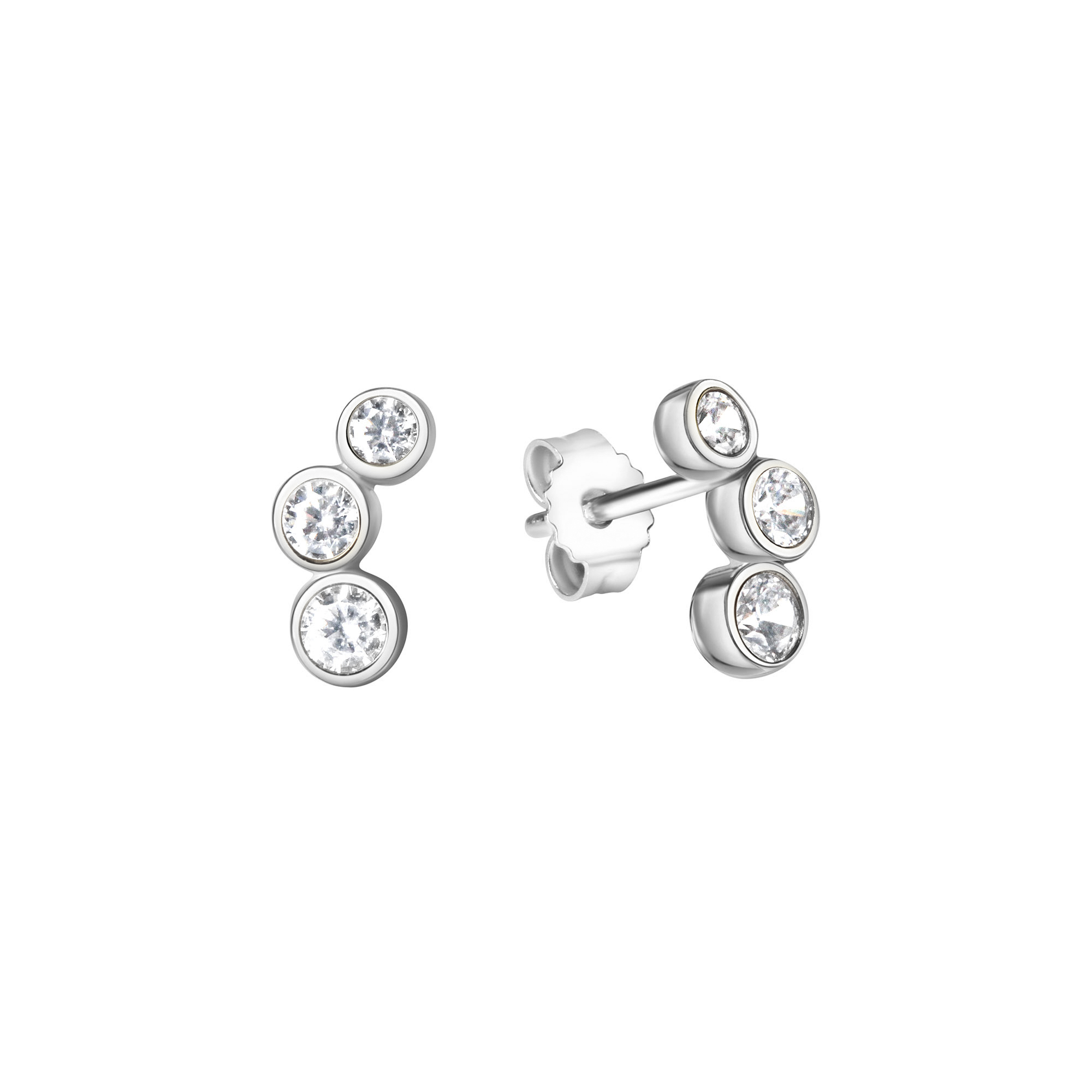 Edle Ohrstecker aus 925/- Sterling Silber rhodiniert. Veredelt mit insg. 6 Zirkonia. Schönes Design. Hochwertige Verarbeitung. Für den Alltag oder besondere Anlässe. .