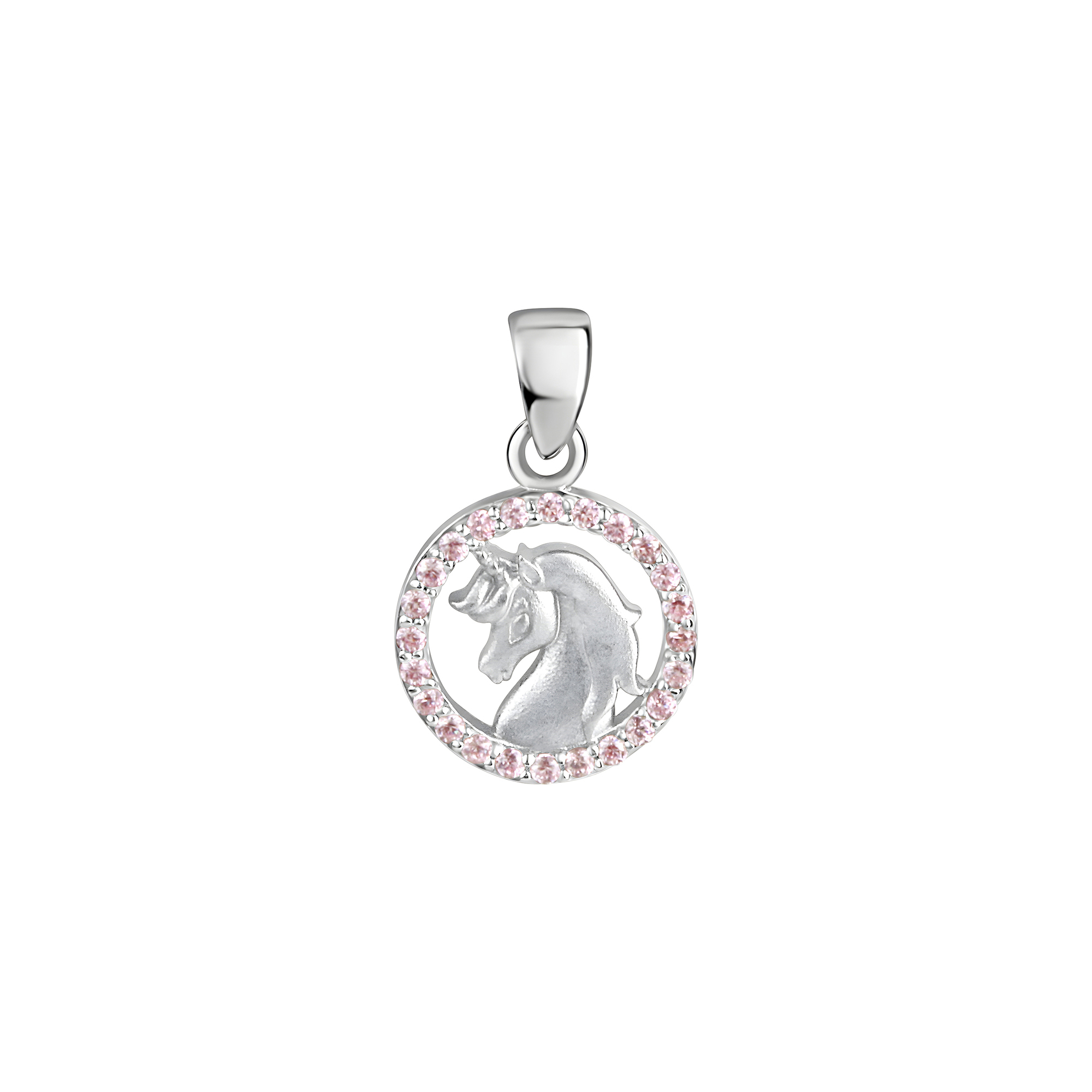 Bezaubernder Anhänger aus 925/- Sterling Silber rhodiniert. Motiv Pferd. Veredelt mit 24 Zirkonia in pink. Oberfläche glanz/matt. Ein schönes Geschenk. .