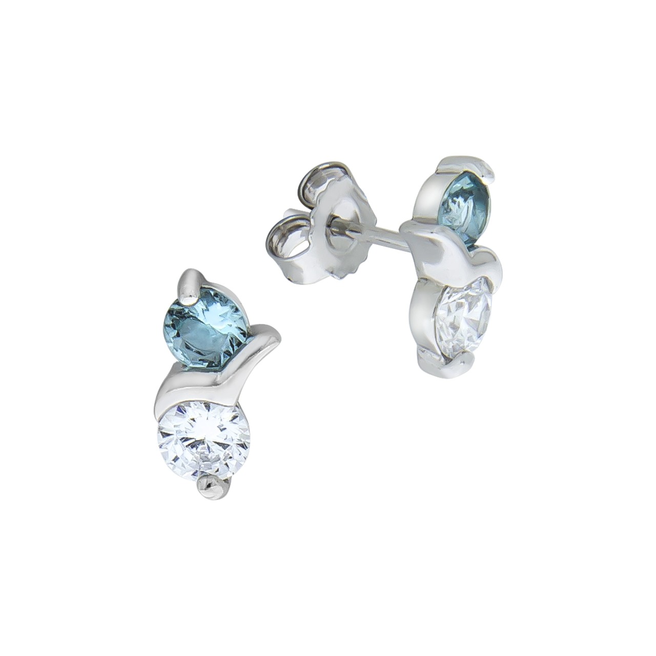 Schöne Ohrstecker aus 925/- Sterling Silber rhodiniert. Veredelt mit Zirkonia und Kristallen hellblau. Schönes Design. Hochwertige Verarbeitung. Das ideale Geschenk für besondere Anlässe. .