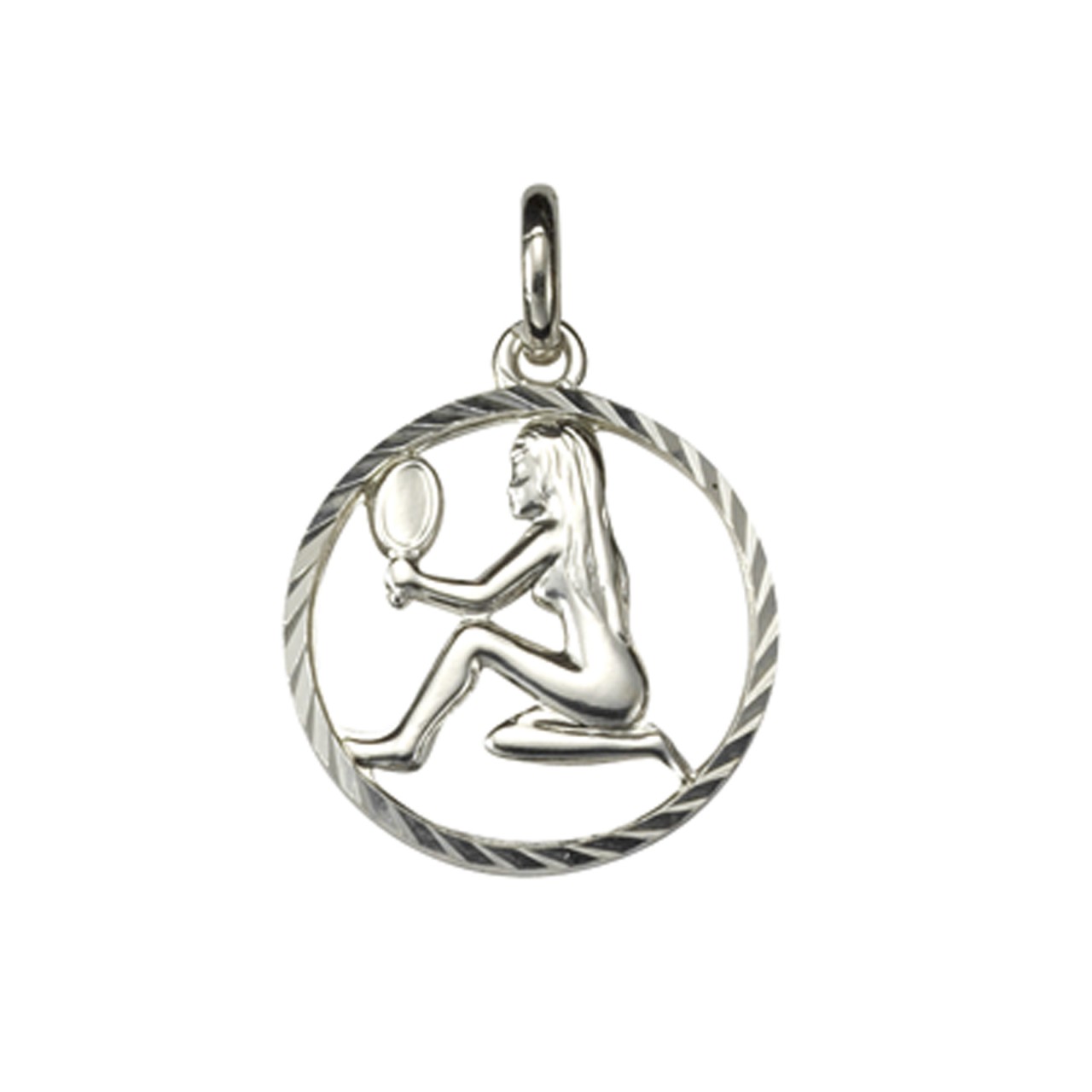 Sternzeichen-Anhänger Jungfrau. 15mm Durchmesser. Rand aufwändig diamantiert. Plastische Darstellung. Hochglanzpolierte Oberfläche. .
