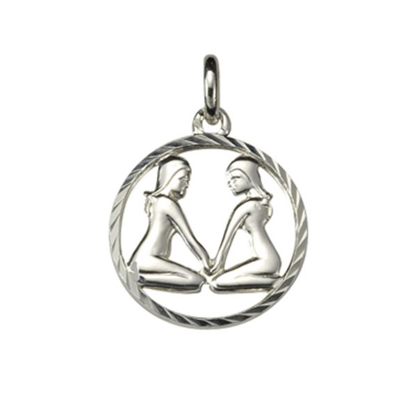 Sternzeichen-Anhänger Zwillinge. 15mm Durchmesser. Rand aufwändig diamantiert. Plastische Darstellung. Hochglanzpolierte Oberfläche. .