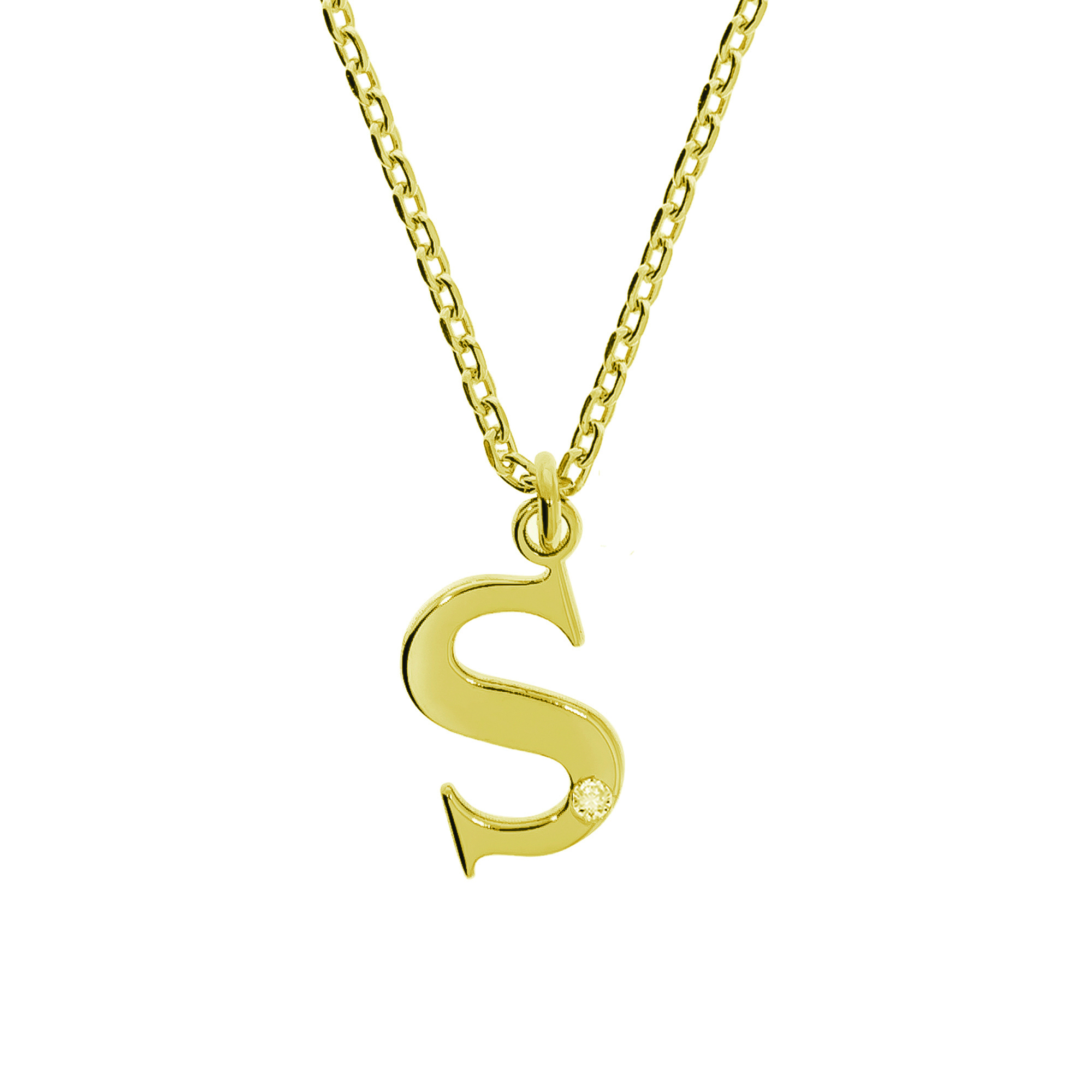 Kette mit Anhänger aus 925/- Sterling Silber vergoldet. Buchstabe S. Veredelt mit 1 Diam. 0,008 ct.. Länge 45+3 cm. Ideal als elegantes Geschenk zum Geburtstag, Jubiläum oder anderen besonderen Anlässen. .