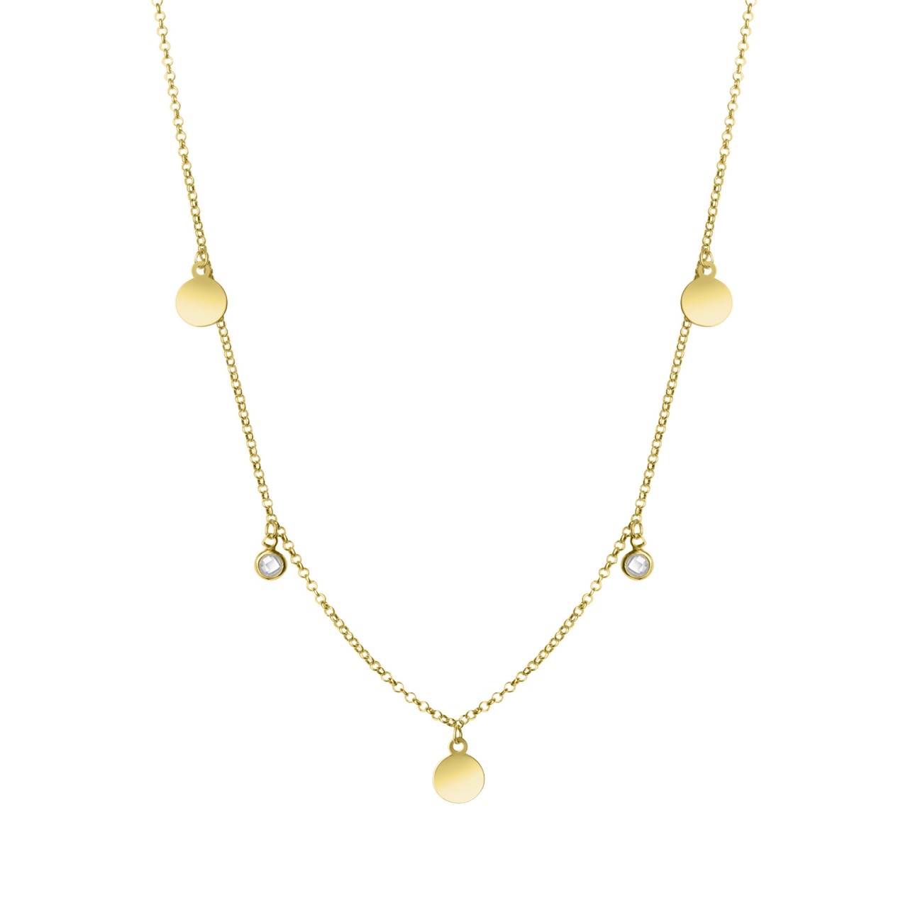 Elegante Erbskette aus 925/- Silber vergoldet. Mit 3 Plättchen glanz und 2 Zirkonia weiß. Variabel in der Länge. Hochwertige Verarbeitung. Das ideale Geschenk für besondere Anlässe. .