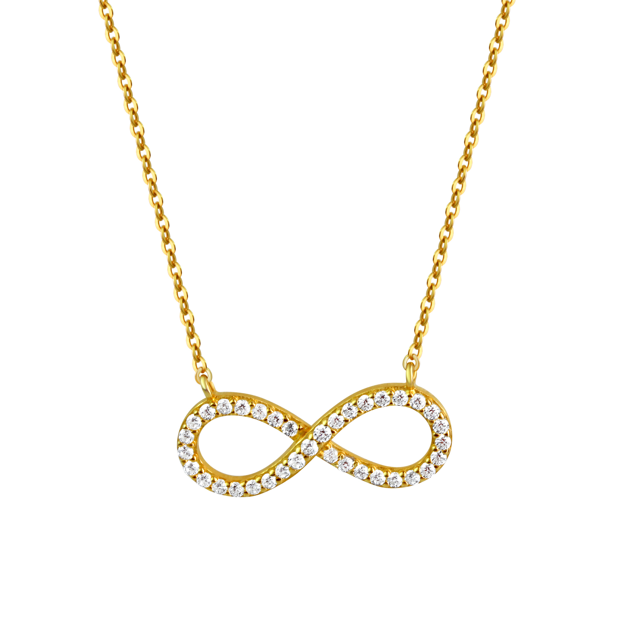 Bezauberndes Collier aus 925/- Sterling Silber vergoldet. Motiv Infinity. Veredelt mit 36 weißen Zirkonia. Ankerkette 42+3cm lang. Perfekt als luxuriöses Geschenk für besondere Menschen und Anlässe. .