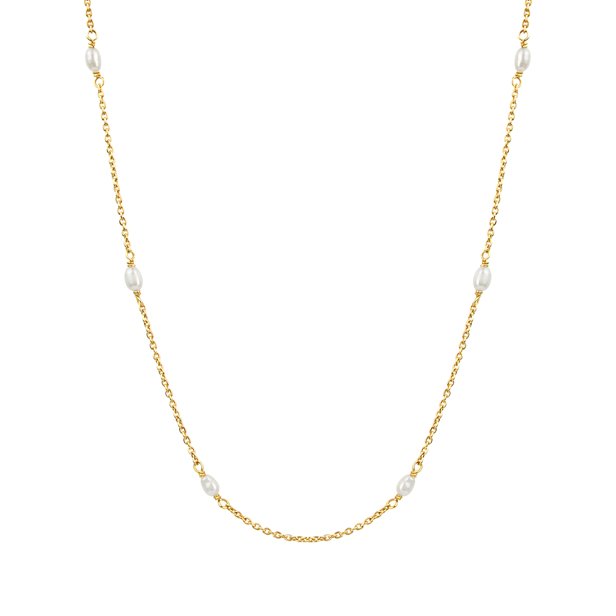 Filigranes Collier aus 925/- Sterling Silber vergoldet. Veredelt mit 6 Süßwasserzuchtperlen. Länge 45cm variabel verstellbar. Hochwertige Verarbeitung. Perfekt als luxuriöses Geschenk für besondere Menschen und Anlässe. .