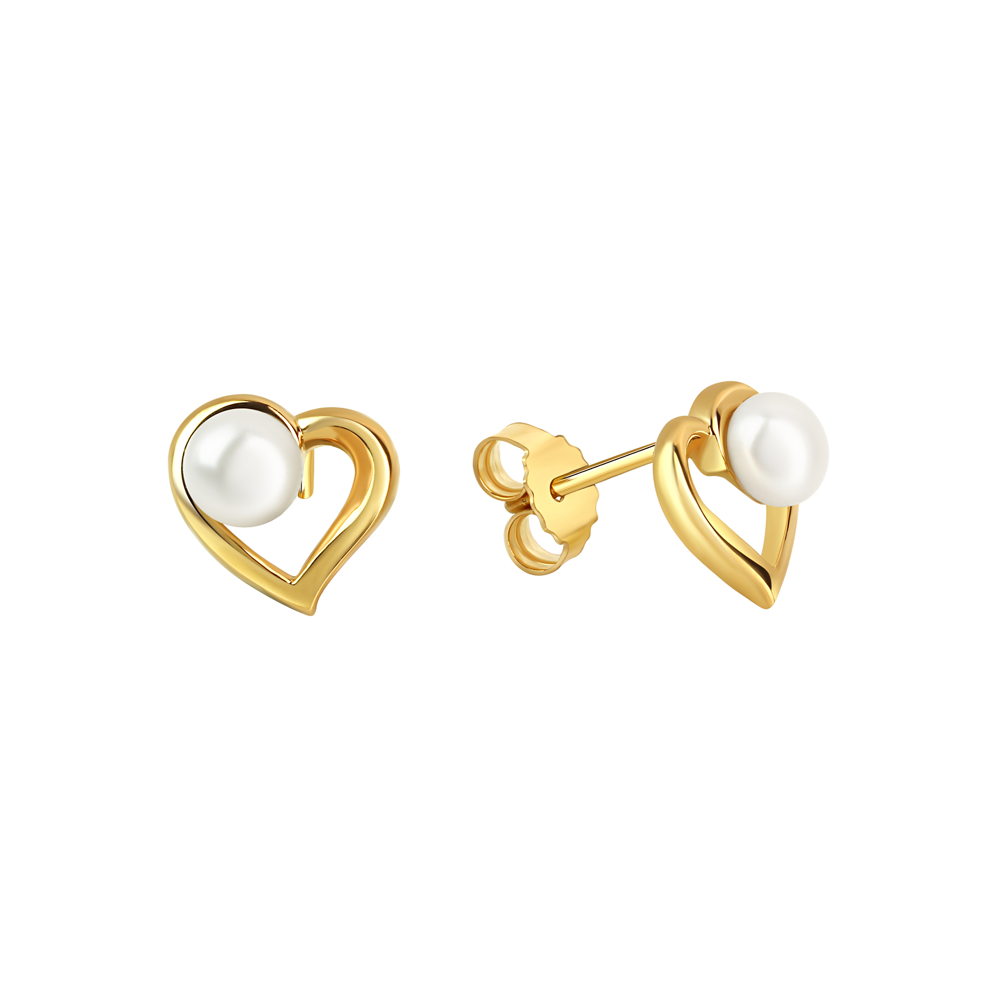 Edle Ohrstecker aus 925/- Sterling Silber vergoldet. Motiv Herzen. Veredelt mit 2 Süßwasserzuchtperlen weiß. Angenehmer Tragecomfort. Perfekt als luxuriöses Geschenk für besondere Menschen und Anlässe. .