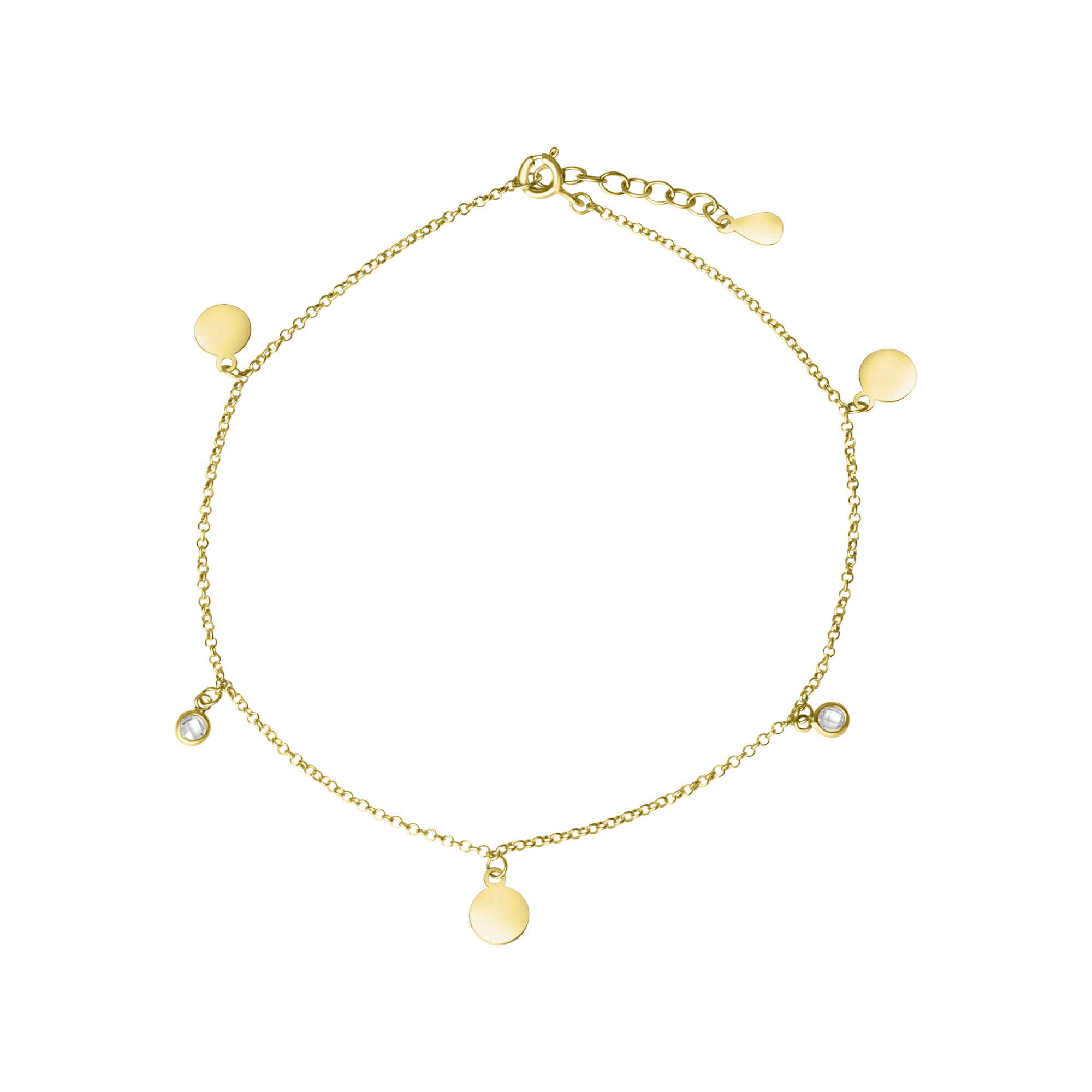 Bezauberndes Armband aus 925/- Sterling Silber vergoldet. Veredelt mit 3 Plättchen und 2 weißen Zirkonia. Erbskette 17+2cm lang. Angenehmer Tragecomfort. Perfekt für festliche Abende oder als geschmackvolles Geschenk für einen lieben Menschen. .