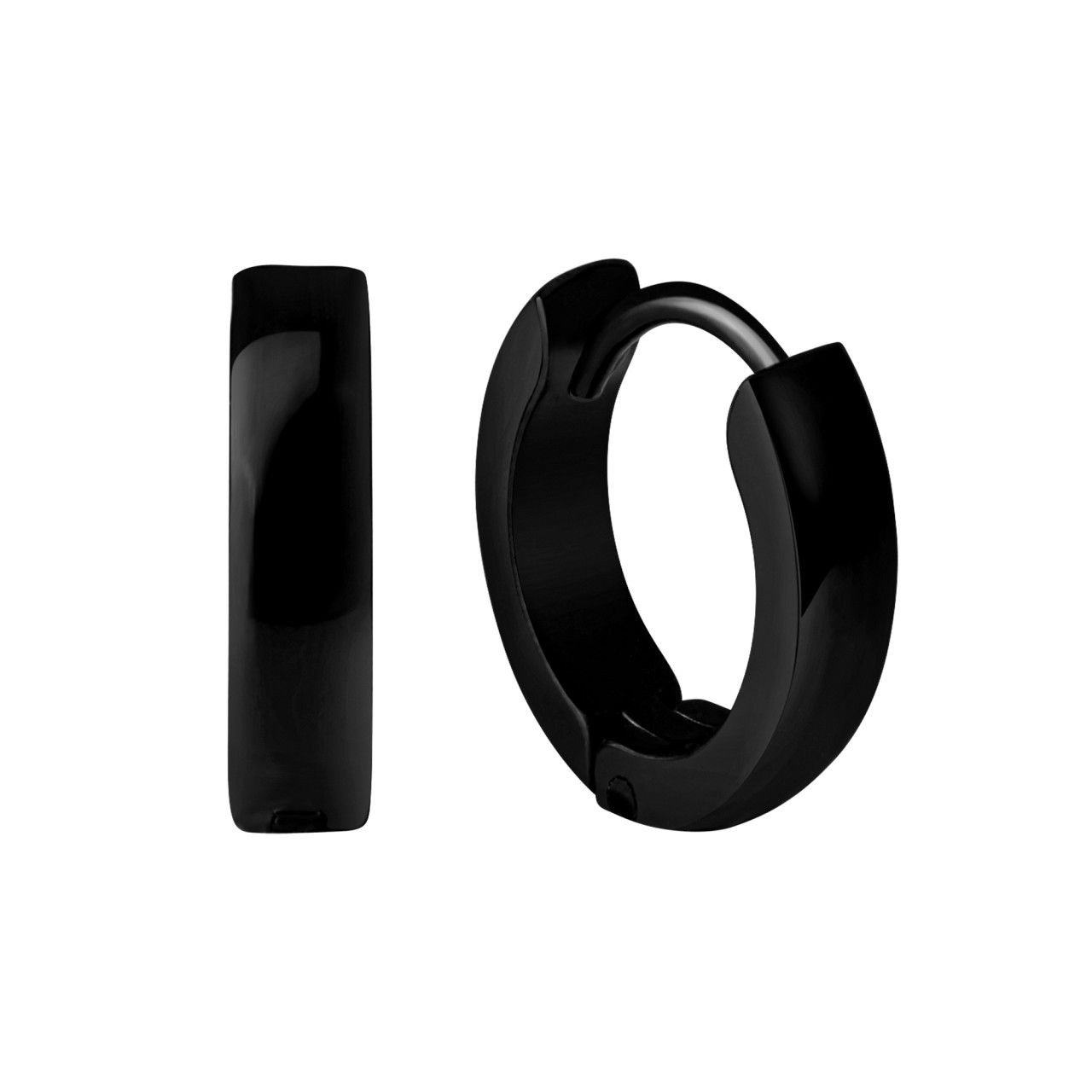 Schöne Klappcreolen aus Edelstahl. Mit schwarzem Lack. Sehr angenehmer Tragekomfort. Hochwertige Verarbeitung. Das ideale Geschenk für besondere Anlässe. .