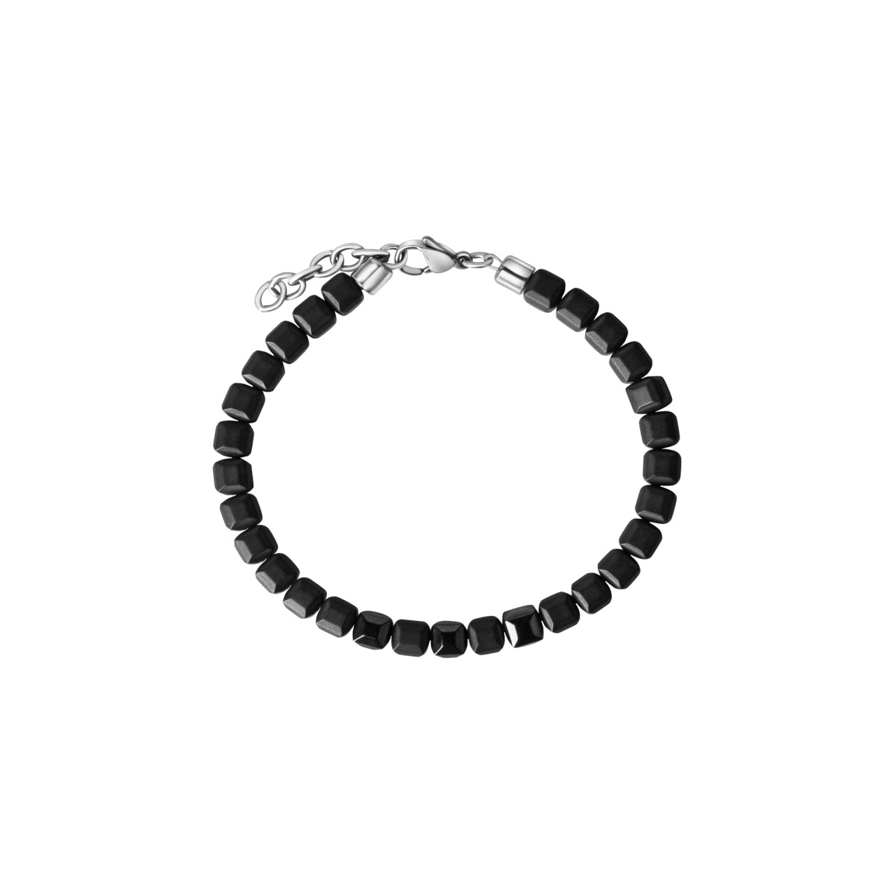Armband aus Edelstahl. Hämatitwürfel matt/glanz. Länge 19+2 cm. Hochwertige Verarbeitung. Das ideale Geschenk für besondere Anlässe. .